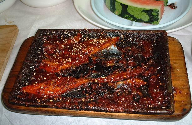鰻の蒲焼。デザートはスイカで甘さはサッパリめ。