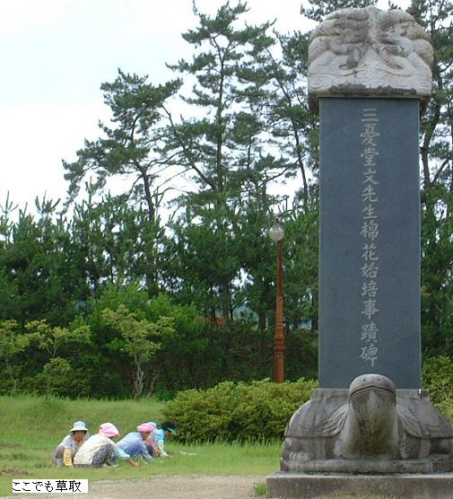 綿花展示館に着く。韓国で初めて綿を栽培し始めた「文益漸(ムンイクチョム)」と言う人の墓所でもある。奇しくもコンダクターの文さんの先祖に当たり、文さんは誇りに思うと共に面映いようであった。1300年代、絹と麻だけの時代に木綿が作りだされた事は衣料や漁の網等、大きな意義が有ったという。